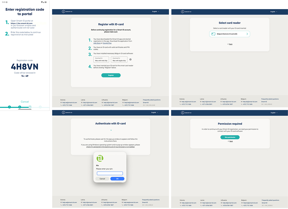 - A valid Belgian ID-card with PIN codes;